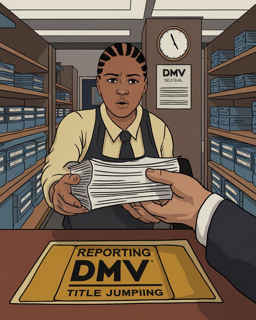 - To report title jumping, gather evidence and file a complaint with your local DMV or Department of Motor Vehicles.