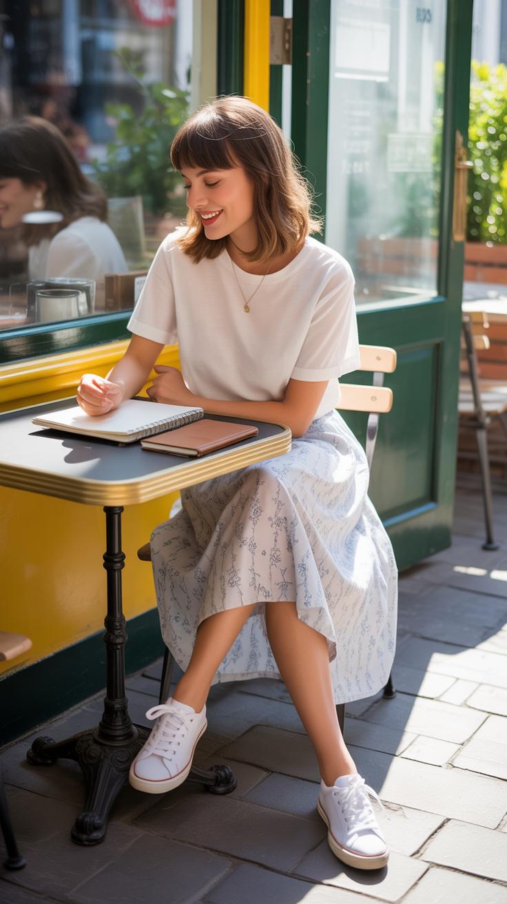 Skirts in solid colors or simple patterns work similarly. A midi skirt in a neutral tone pairs well with blouses or basic tees alike. It’s surprising how a simple change in top can give the skirt a totally different vibe.