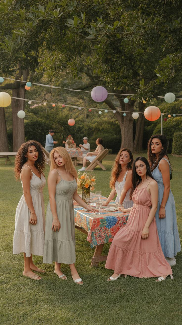 Your shoes should match both the terrain and the dress style. Flat sandals or espadrilles are great for grassy garden parties. For beach outings, slides or waterproof sandals let you walk on sand without hassle. Avoid heels that sink into soft ground. If you expect to stand or walk a lot during a barbecue, choose supportive yet stylish shoes to prevent foot fatigue.