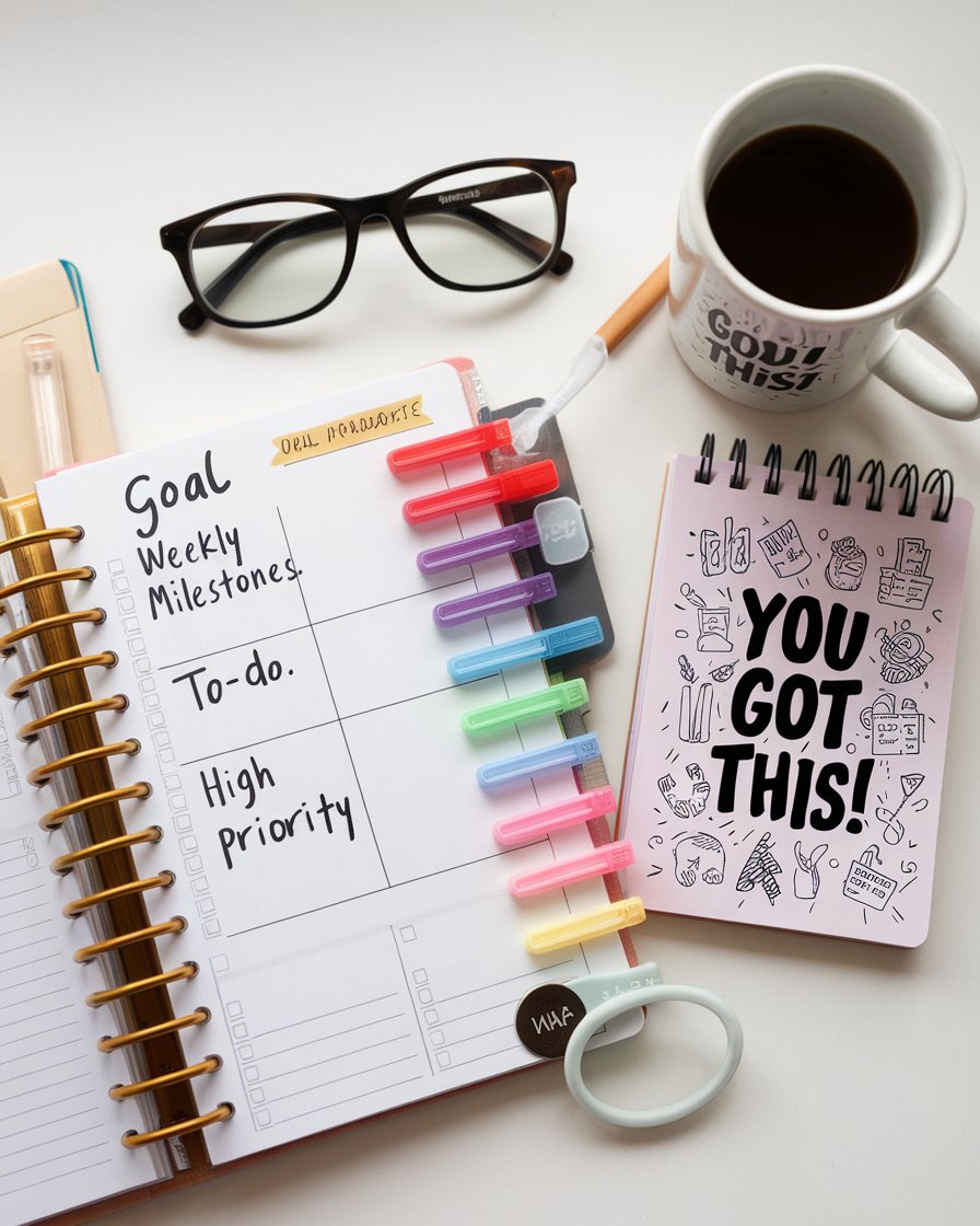 Jane, a small business owner, found herself overwhelmed by her daily responsibilities and struggled to keep track of her long-term goals. After researching productivity techniques, she revamped her planner to focus on goal prioritization. She began by breaking her objectives into smaller, achievable tasks and categorizing them by urgency—placing high-priority goals at the forefront of her planner. This structured approach allowed her to concentrate on key areas, such as client outreach and product development, without feeling scattered.