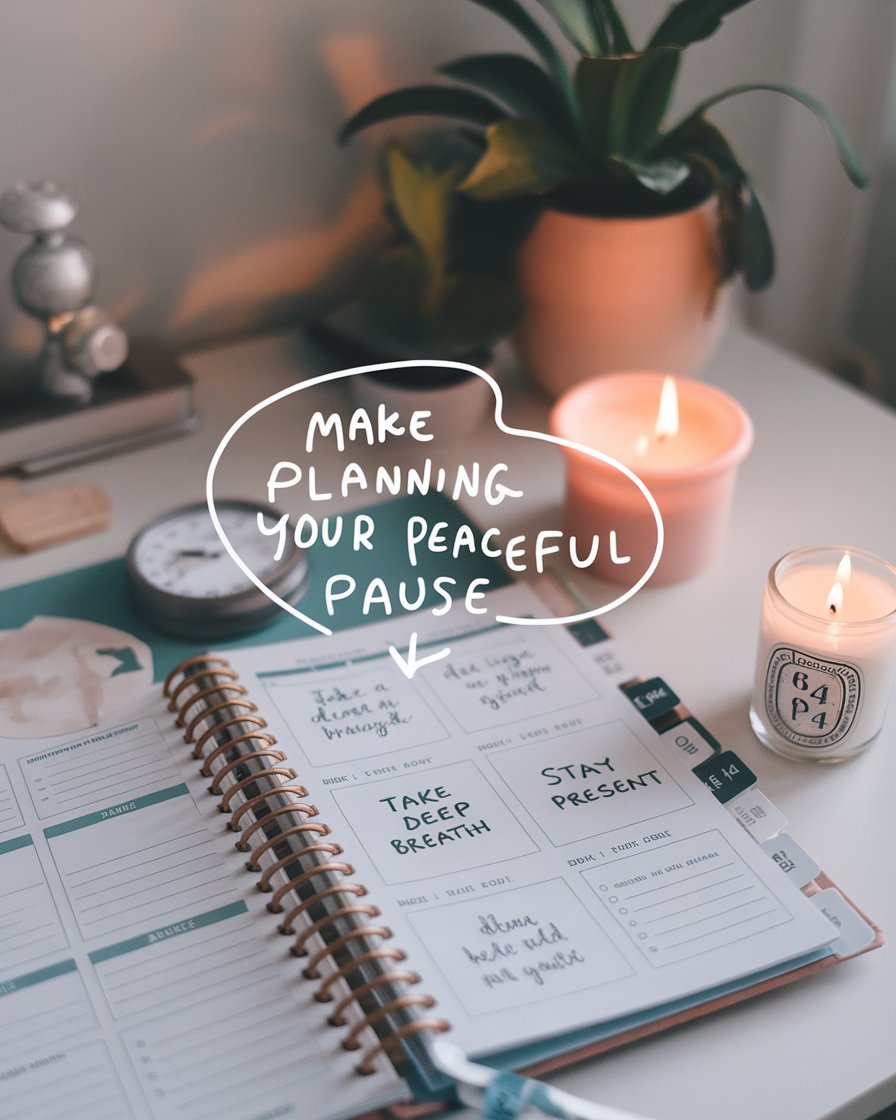 Adding mindfulness practices to the planning routine can provide a moment of calm and help reduce stress. Simple activities like taking a few deep breaths before starting the day’s plan, or jotting down a mindful intention, can enhance focus. Adding short mindfulness reminders in the planner, such as “pause and breathe” or “reflect for a minute,” can encourage users to stay present and centered throughout their day. This not only supports mental well-being but also boosts productivity, as a calm mind is better equipped to handle tasks efficiently. These mindfulness touches make planners not only functional but also supportive tools for emotional resilience.