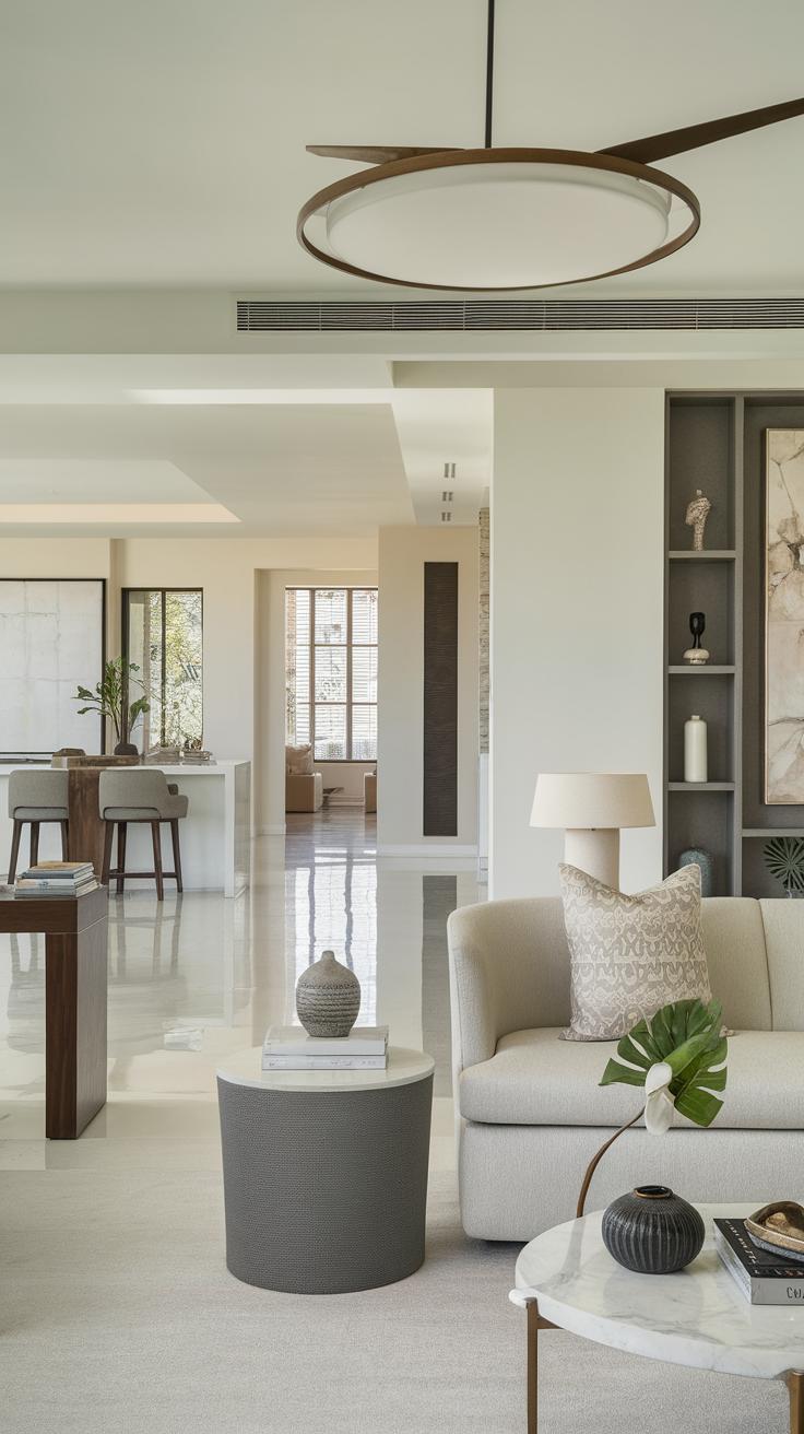 Incorporate various textures that reflect the farmhouse style, such as wood and metal accents. Position side tables or a console table near seating areas for easy access to drinks and lamps. Leave enough space for traffic flow, ensuring that guests can move around freely. Adding plants or farmhouse-style decor elements helps to create warmth while maintaining a cohesive look throughout the room.