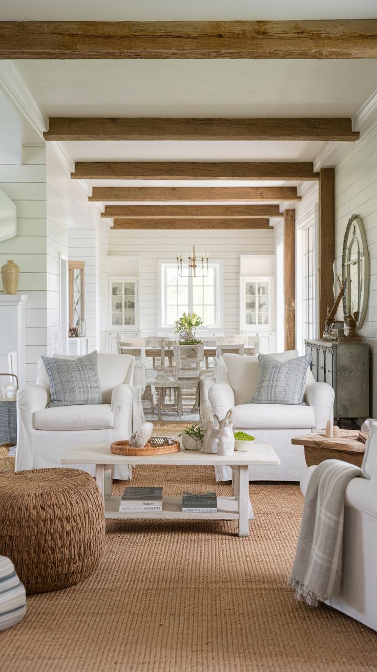 To achieve an authentic farmhouse look in your living room, focus on selecting furniture that highlights comfort and style. Opt for large, overstuffed sofas with soft, neutral upholstery. These pieces invite relaxation and provide ample seating for family and friends. Look for wooden coffee tables, preferably with a distressed finish, to add character and warmth to the space. Accent chairs with natural fabrics like linen or cotton bring an inviting touch, while vintage-style accessories add charm.