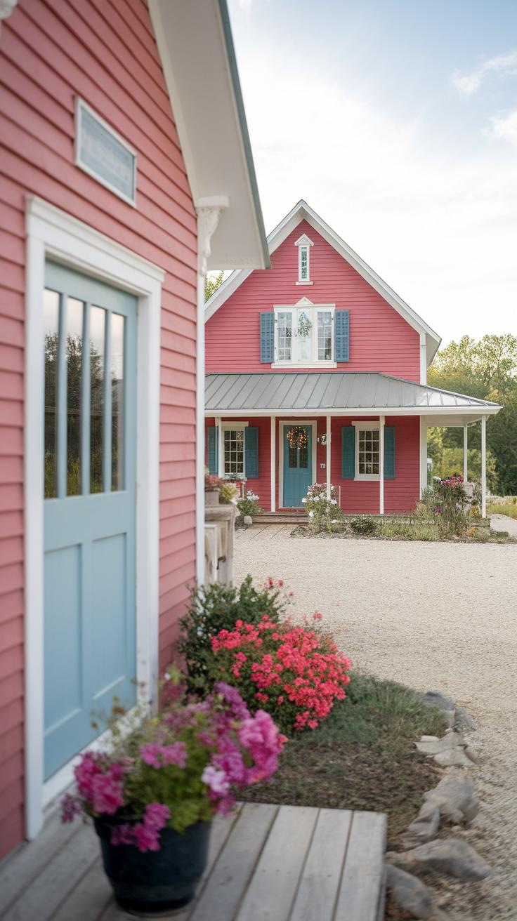 Accent colors bring personality to the exterior. Bright shutters or door frames can attract attention and add warmth. When selecting colors, consider the overall style and environment of the home. A well-coordinated color scheme reflects personal taste and complements the landscape, helping to transform a simple farmhouse into a stylish and inviting retreat.