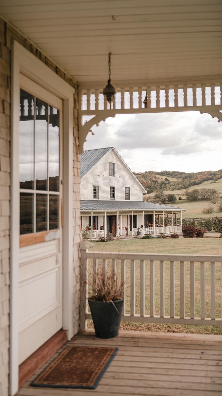 Farmhouse exteriors shine with simple yet captivating accessories that enhance their charm. Shutters serve as functional and decorative elements, adding color and interest to windows. Installing classic wooden shutters painted in soft hues can create a warm, inviting look. Entryways also contribute to the charming farmhouse style; consider adding a rustic door with vintage hardware to make a memorable first impression. You might enhance the entry further with potted plants or a cozy rug that greets visitors.
