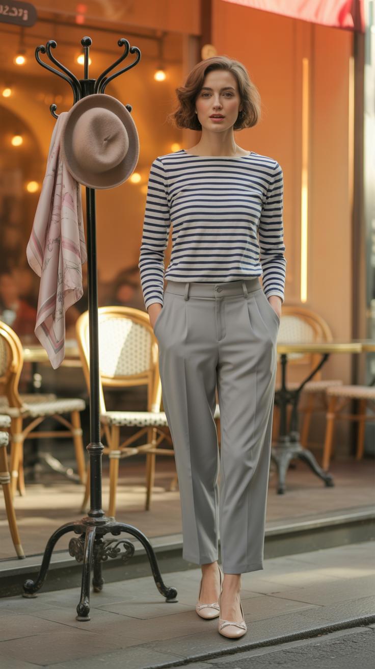 - Striped tops, particularly Breton-style shirts, which seem to embody Parisian chic without even trying.
