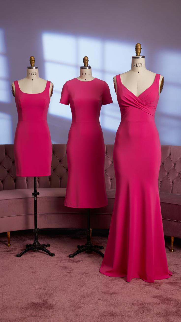Choosing a fuchsia dress means thinking about more than just the color. Your event’s nature guides your choice. For weddings, a knee-length cocktail dress or a flowing chiffon gown fits well. At evening parties, a satin slip dress or a sleek midi can make a striking statement. Galas call for formal gowns with elegant cuts and rich fabrics.