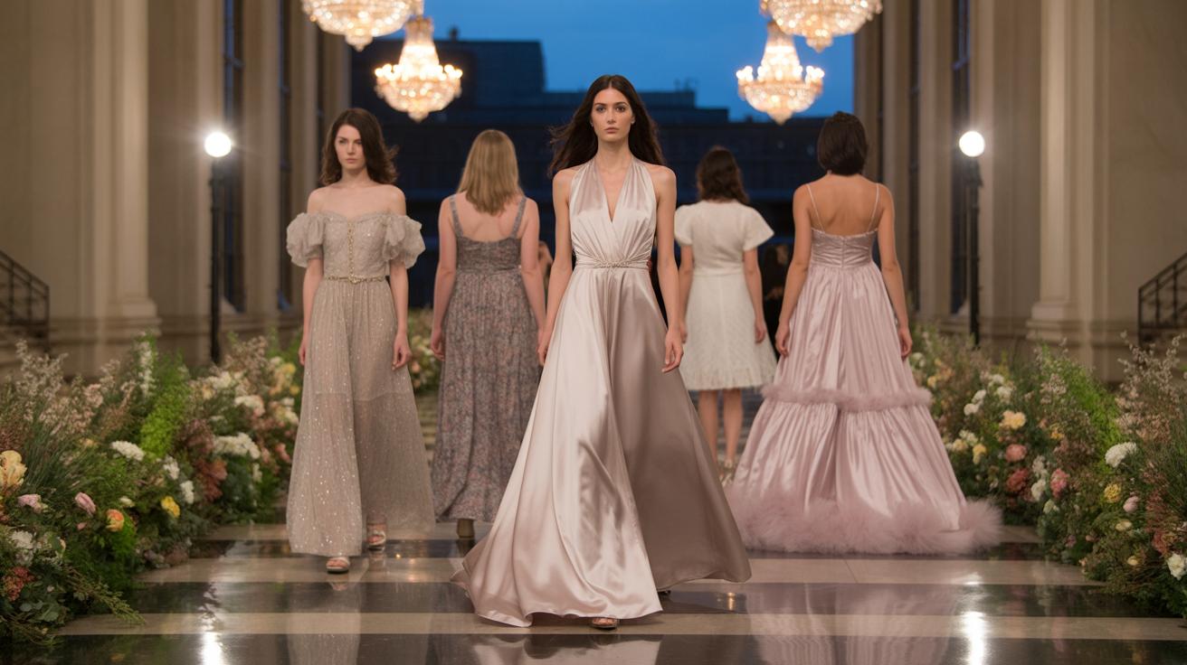 Silk remains popular because it combines luxury with comfort. Its natural fibers allow skin to breathe, avoiding overheating during long events. Satin grabs attention with its shiny finish and works well for dramatic gowns that need firmness.
