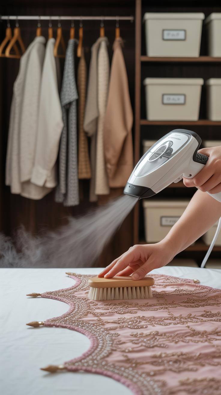 Use a breathable garment bag to shield your dress from dust and light. Avoid plastic covers, which trap moisture and can cause mildew or yellowing.