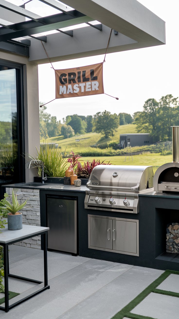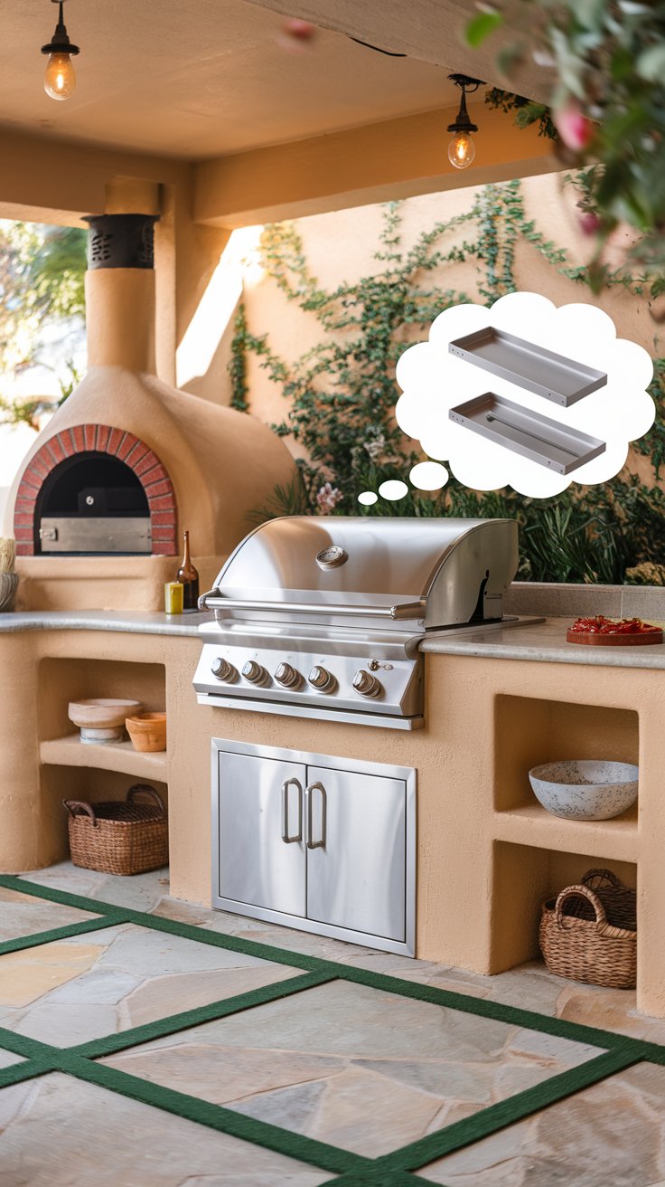 Achieving the perfect balance between aesthetics and functionality in your outdoor kitchen starts with thoughtful layout design and material selection. Emphasize a design that marries durable stainless steel features with custom stone countertops, providing both visual appeal and lasting strength. The integration of DIY elements—such as personalized cabinets and modular grill carts—allows for a uniquely tailored cooking station that meets your specific needs. By ensuring that every component, from the outdoor sink to the integrated bar setup, fits harmoniously into the overall design, you create a space that is as safe as it is stylish. Practical tips like optimal appliance placement and secure storage solutions ensure that your outdoor oasis remains a functional, comfortable, and protected area for all your culinary adventures.