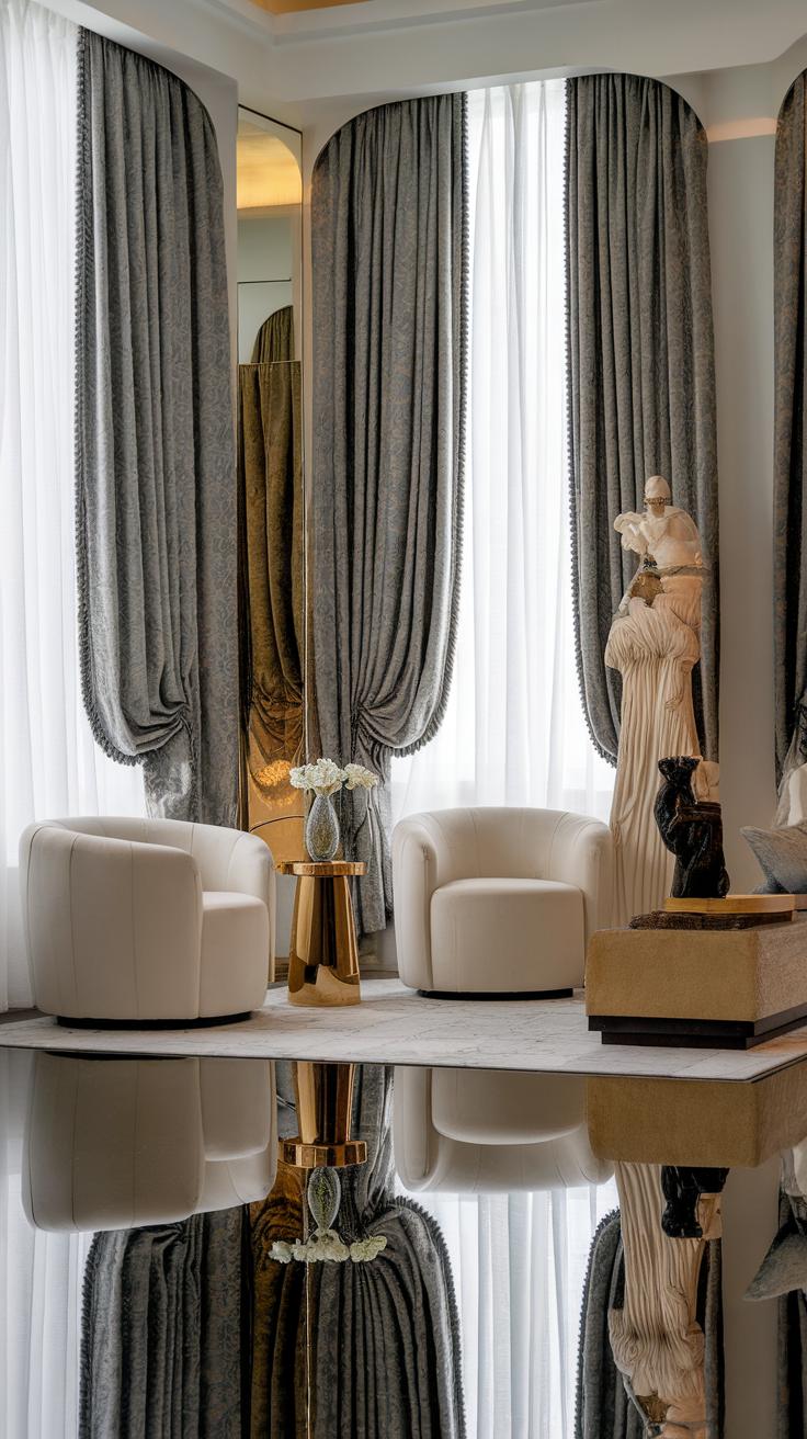Accessories also contribute to the overall atmosphere. Sparkling chandeliers and metallic sculptures reflect the glitz associated with old Hollywood. Decorative mirrors, with their intricate frames, create an illusion of space while enhancing light. Use plush, textured pillows and luxurious throws to bring warmth and comfort to your glamorous environment. Together, well-chosen art and accessories complete your decor scheme, elevating your room to a sophisticated level.