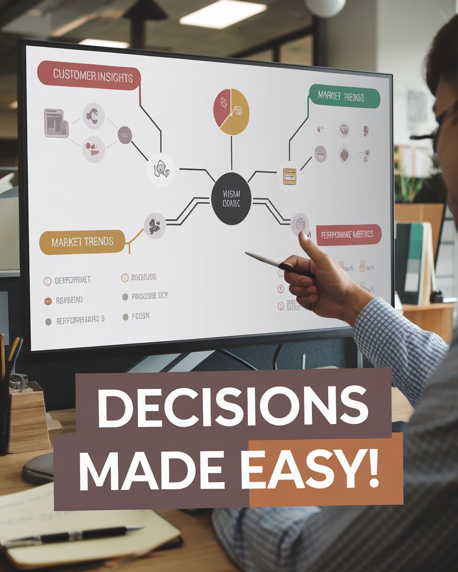 Mind mapping is an effective way to integrate market insights, providing decision-makers with a comprehensive visual of critical data points. By using icons, symbols, and color-coded branches, mind maps help in categorizing and prioritizing information, such as customer feedback and competitive analysis. This organized approach allows leaders to assess relationships and potential impacts before making decisions. By visually connecting data, mind maps offer clarity and aid in identifying actionable insights. This enables decision-makers to base their strategies on accurate, organized information, resulting in more reliable and effective business decisions.