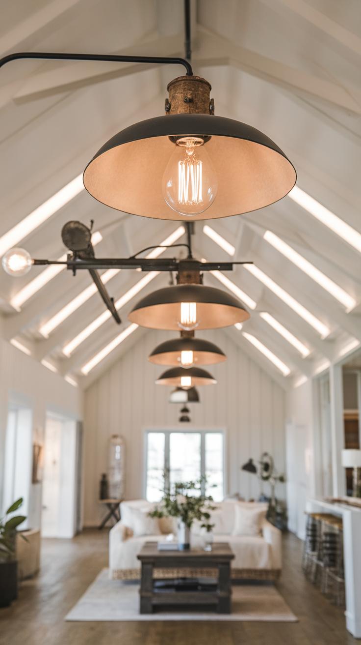 Pendant lights often make great focal points above dining tables or kitchen islands. These fixtures come in various rustic designs, from barn-inspired to industrial styles, which pair beautifully with wooden surfaces. Chandeliers also add elegance and create a stunning visual impact in living rooms or entryways. Simple, clean lines make the best choices to maintain the farmhouse look.