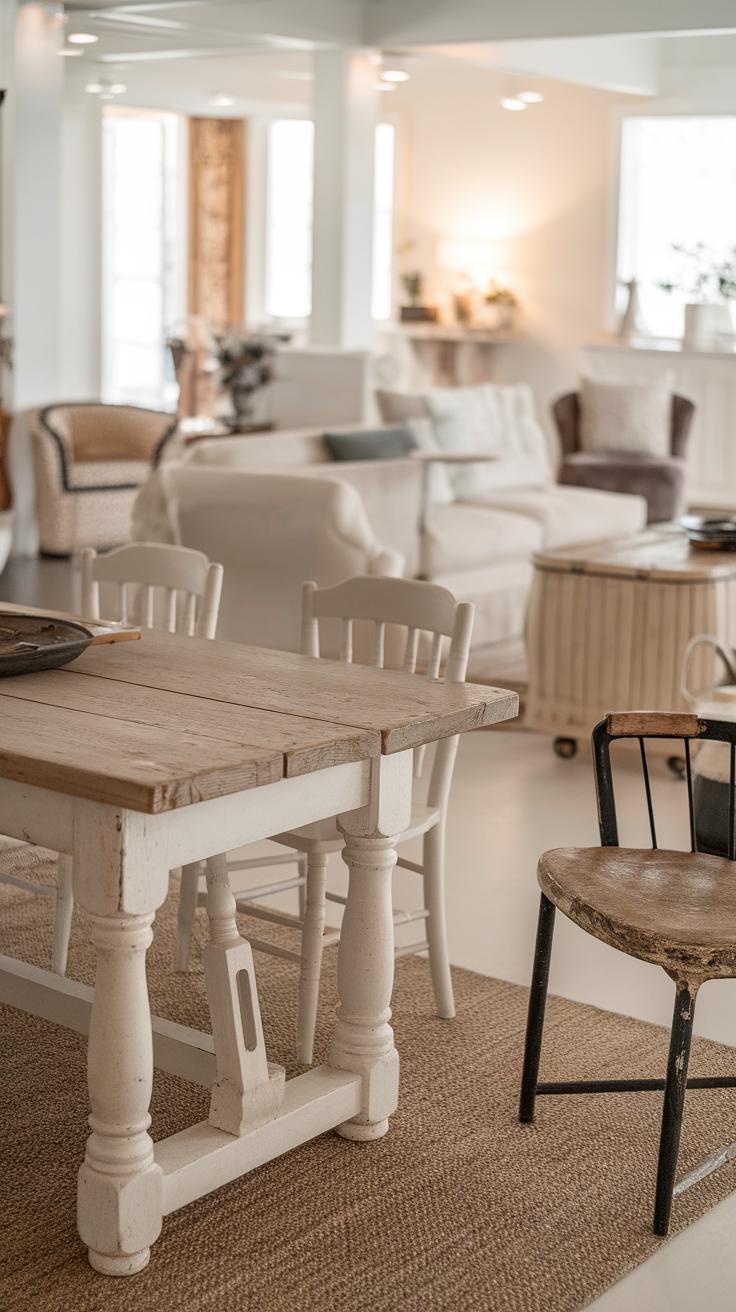 For larger homes, emphasize the spaciousness. Create distinct areas with furniture arrangements, rugs, and lighting. Use elements like reclaimed wood for shelves and farmhouse tables to create unity. Incorporating plants adds vibrancy and connects indoor and outdoor spaces. Personalize your decor with unique accessories, such as vintage signs or handmade pottery, to bring character to each room.