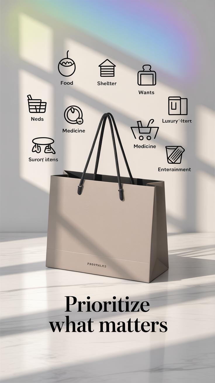 - Only buy essentials like groceries and toiletries—skip the extras.