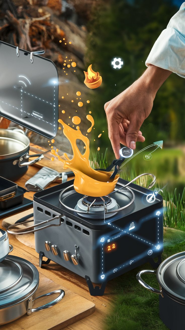 Smart accessories like windscreens, regulators, and adapters play a pivotal role in enhancing outdoor stove performance. These features ensure that the stove maintains a stable flame even in challenging conditions, such as wind gusts or uneven terrains. A well-designed windscreen minimizes heat loss, while a precise regulator keeps the flame consistent for both simmering and rapid boiling. Many advanced models from Camp Chef and Primus incorporate these smart accessories, ensuring optimal fuel efficiency and ease of setup. Whether you’re using propane canisters or a fuel bottle, these enhancements improve overall cooking efficiency while reducing boil time.