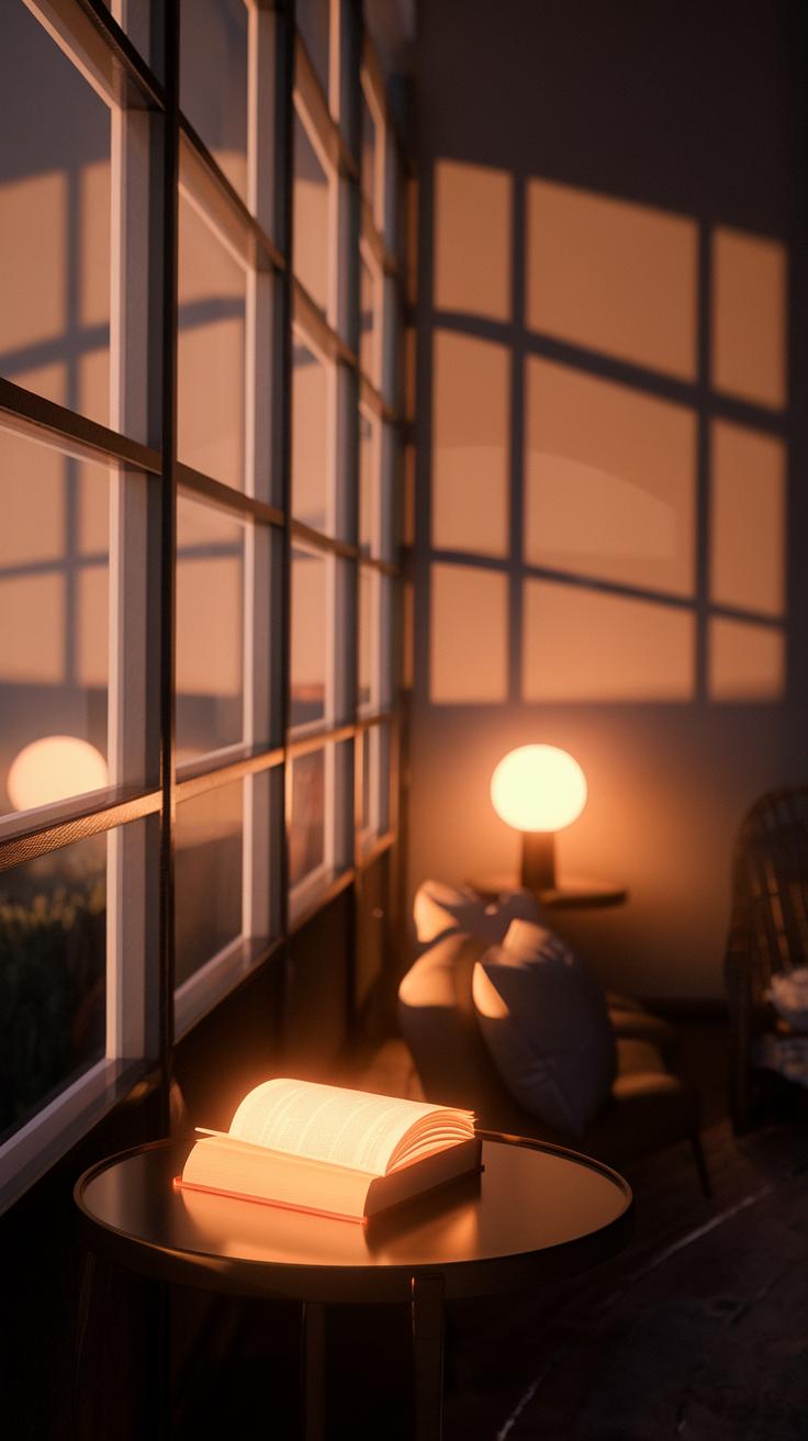 Mix various light sources to enhance the atmosphere. Ambient lighting fills your space with gentle illumination, while task lighting focuses on your reading material. Use string lights or fairy lights for a whimsical touch. They bring a delightful glow without overwhelming brightness. During the day, let natural light in by using sheer curtains that allow sunlight to filter through, keeping your nook warm and inviting.