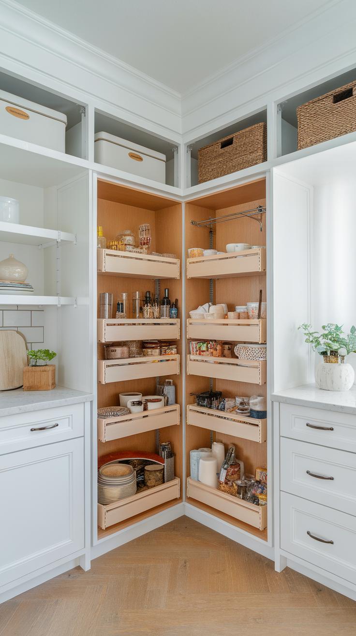 Vertical storage lets you take advantage of walls and overhead areas. Hooks for hanging pots, magnetic strips for utensils, or shelves above windows can hold items without eating into floor space.