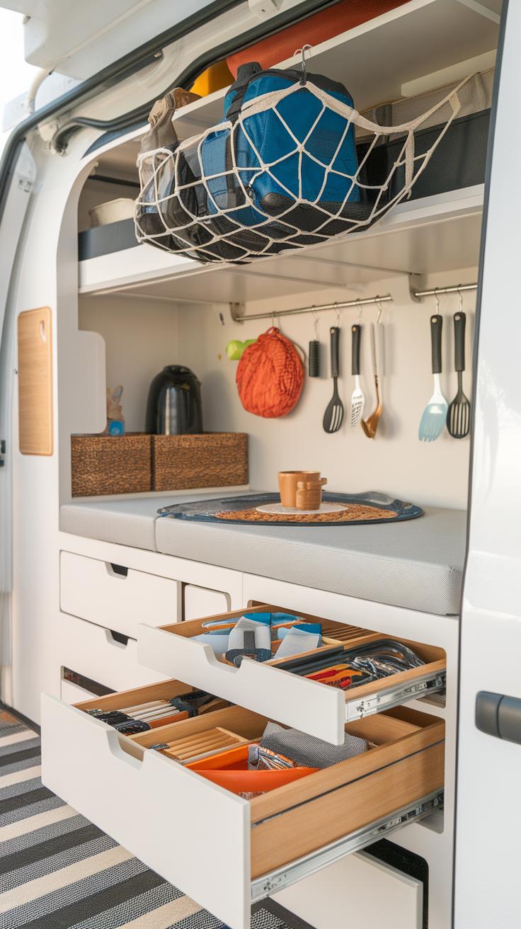 Integrating storage into your furniture offers more space without extra bulk. Beds with built-in drawers underneath can store blankets, clothes, or gear. Seating with lift-up tops hides supplies, keeping your camper tidier. These solutions reduce visible clutter and improve the look of your camper. Multi-use storage means you avoid adding off-putting boxes or bins that take up valuable space. What items do you use frequently but find hard to store? Consider adding hidden compartments to keep those essentials nearby but out of sight.
