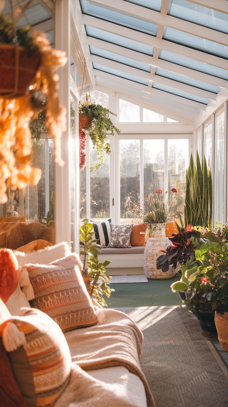 In spring, emphasize blooming plants and fresh, vibrant colors, inviting the beauty of the outdoors inside. Adjustable lattices or trellises outside can support flowering vines, adding shade as the weather warms. Tailoring your sunroom to each season ensures comfort and enjoyment in all environments.
