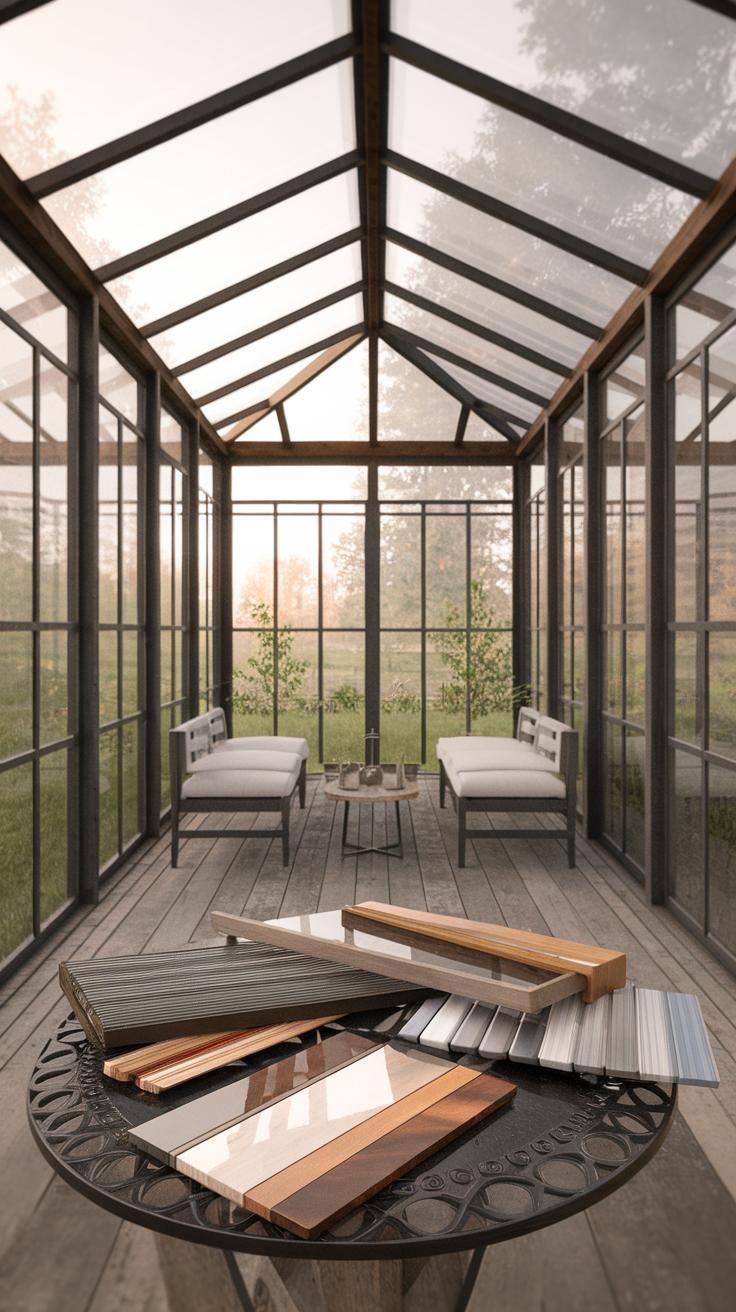 Choosing glass is vital since it affects natural light and insulation. Low-e glass reflects heat while allowing sunlight in, offering energy efficiency. Tempered glass provides safety and strength but can be more expensive. Regular glass allows for maximum visibility but lacks insulation. Consider your climate when selecting glass to ensure your sunroom remains comfortable year-round.