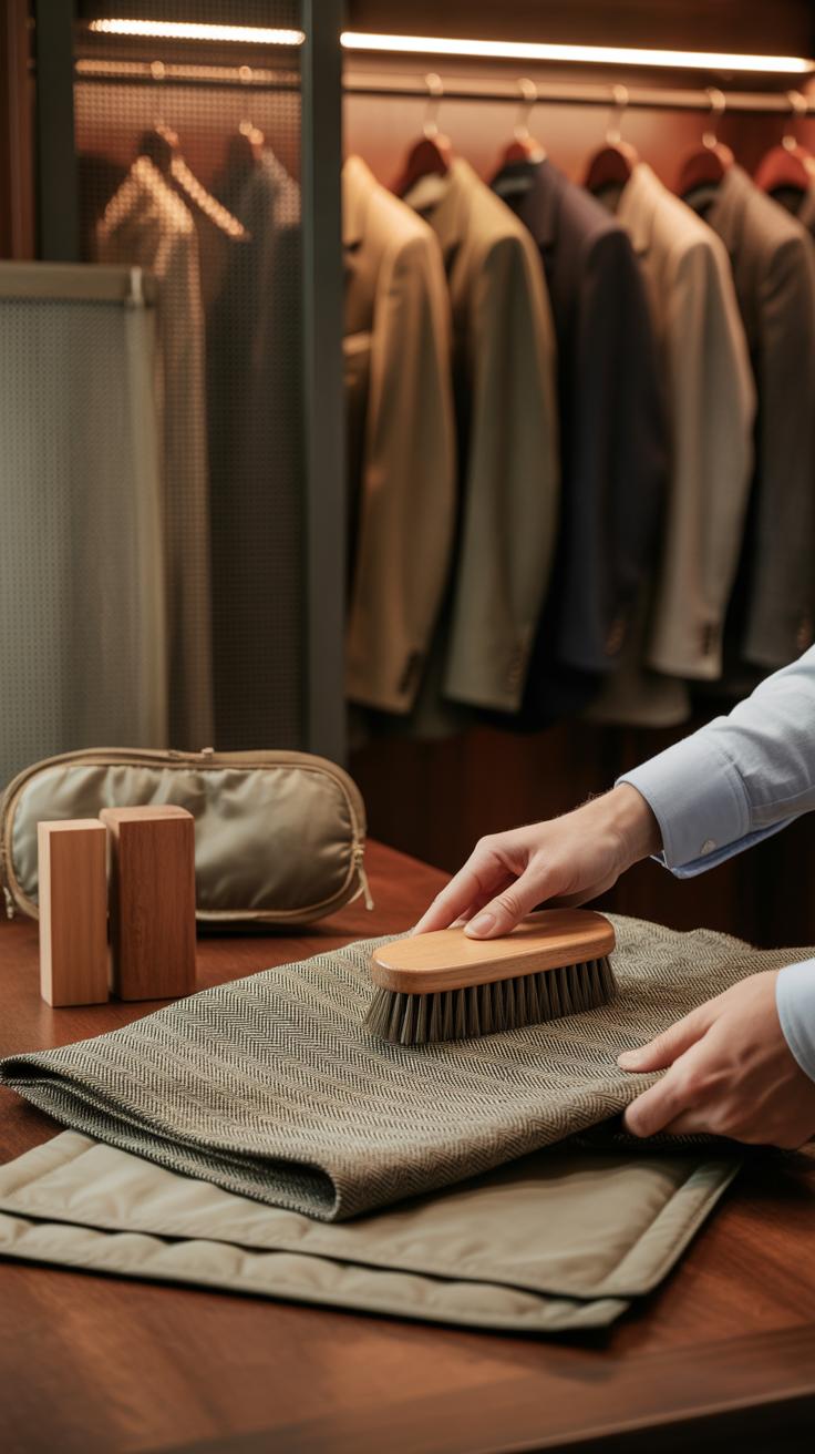 Store your tweed jacket on a sturdy, wide hanger to keep shoulder shape. Use breathable garment bags instead of plastic to allow airflow. This stops moisture buildup that can cause mildew.