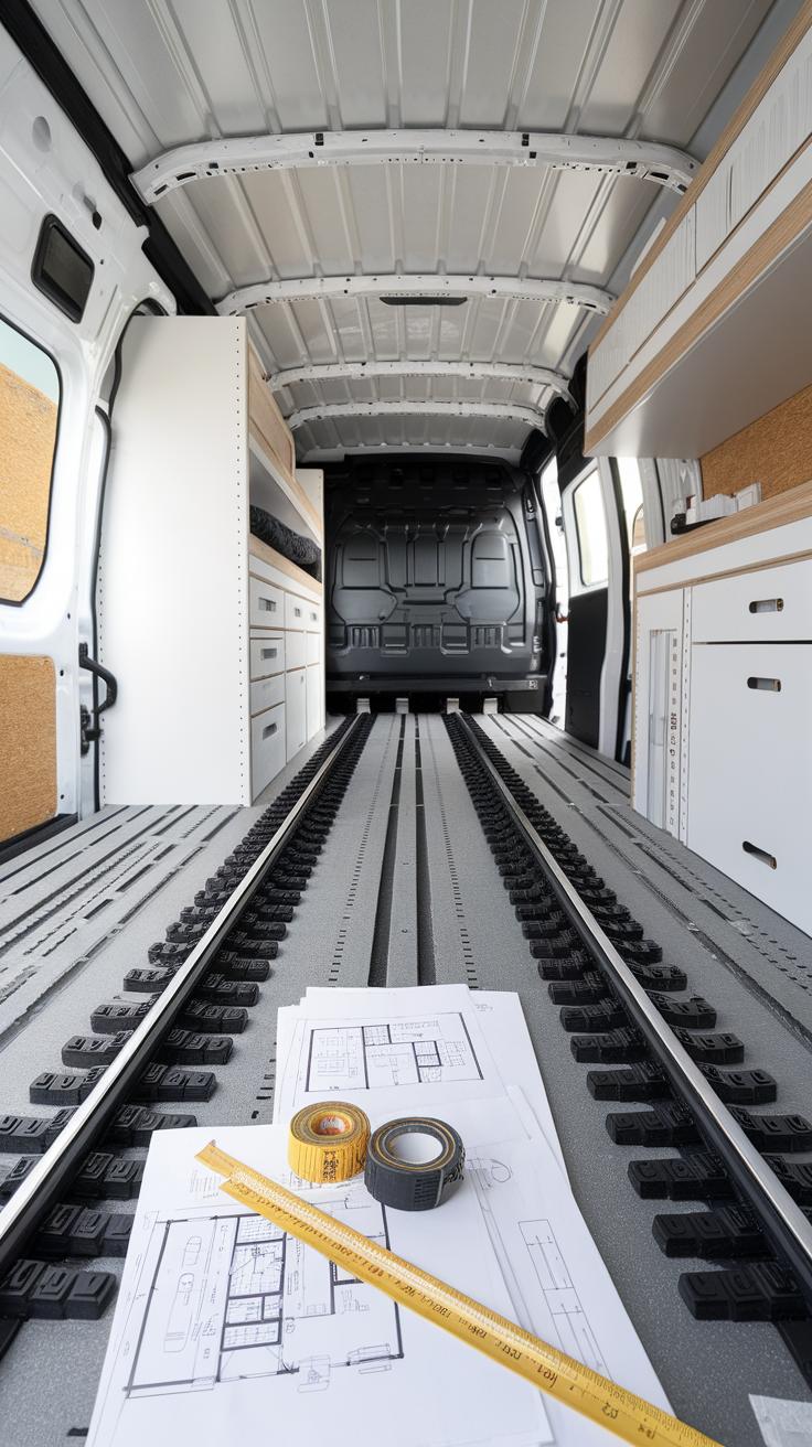 Begin with tools like a tape measure and notepad. Measure the length, width, and height of your van’s interior carefully. Record measurements of walls, doors, windows, and any curves or wheel wells that reduce space.