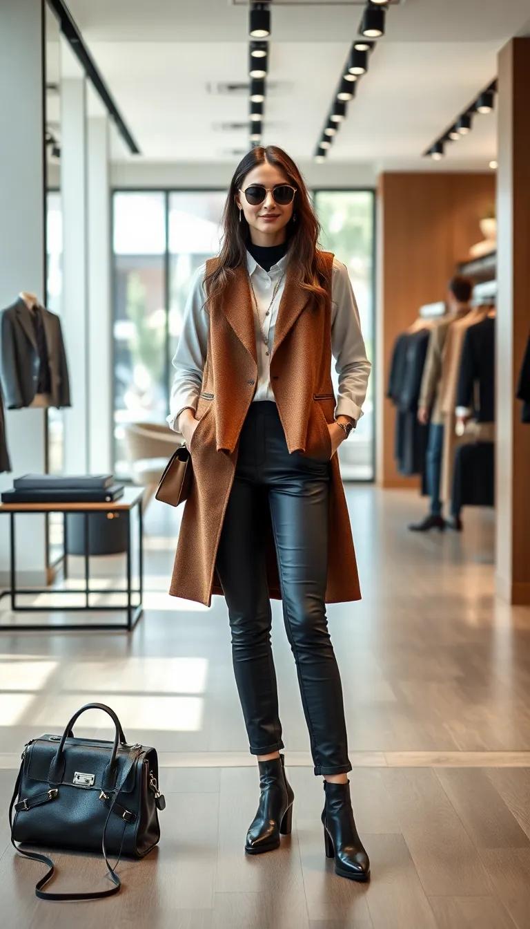 Next, let’s focus on belts. Adding a belt can define your waist and add structure to an outfit. A wide belt works beautifully with flowy vests, helping to cinch the waist and create an hourglass shape. Conversely, a thin belt can offer a subtle accent over a fitted vest without overwhelming the outfit. Experiment with colors and textures; a contrasting belt can create visual interest, while matching tones can provide a cohesive look.
