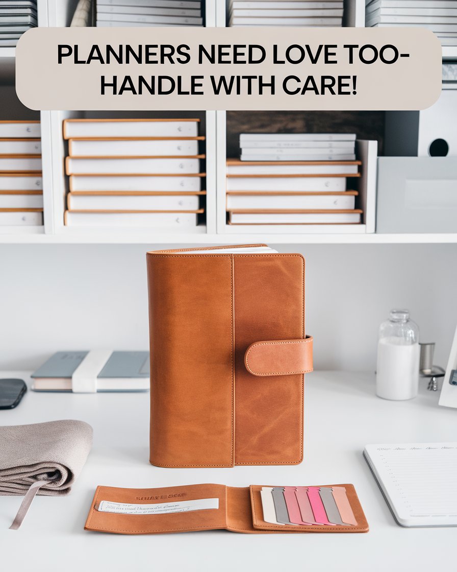 Keep your planner in a dedicated space, such as a padded bag or a shelf away from direct sunlight and moisture. Use a leather cover or sleeve for extra protection while on the go. These solutions not only protect your planner but also ensure its contents remain secure and accessible.